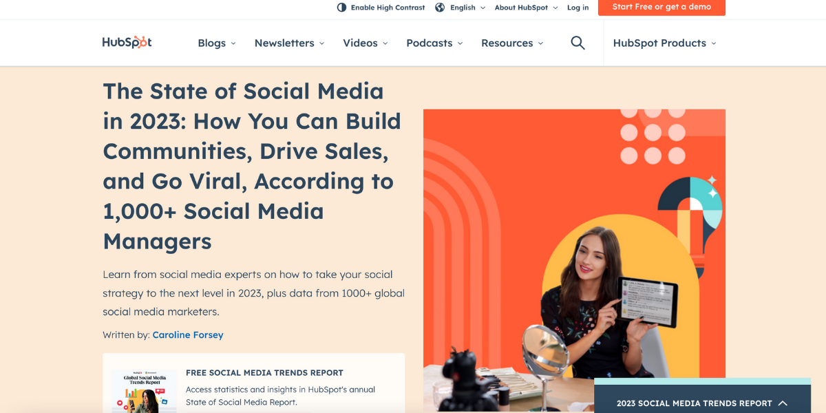 İçerik, başlığı sayesinde 1000’den fazla sosyal medya yöneticisinin görüşü aktardığını belirtiyor. Bu yönüyle, gerçek anlamda bir veriye dayalı içerik. HubSpot Blog araştırmasından oluşan bu içerikte, satış yapma, viral olma gibi konulardan söz ediliyor.