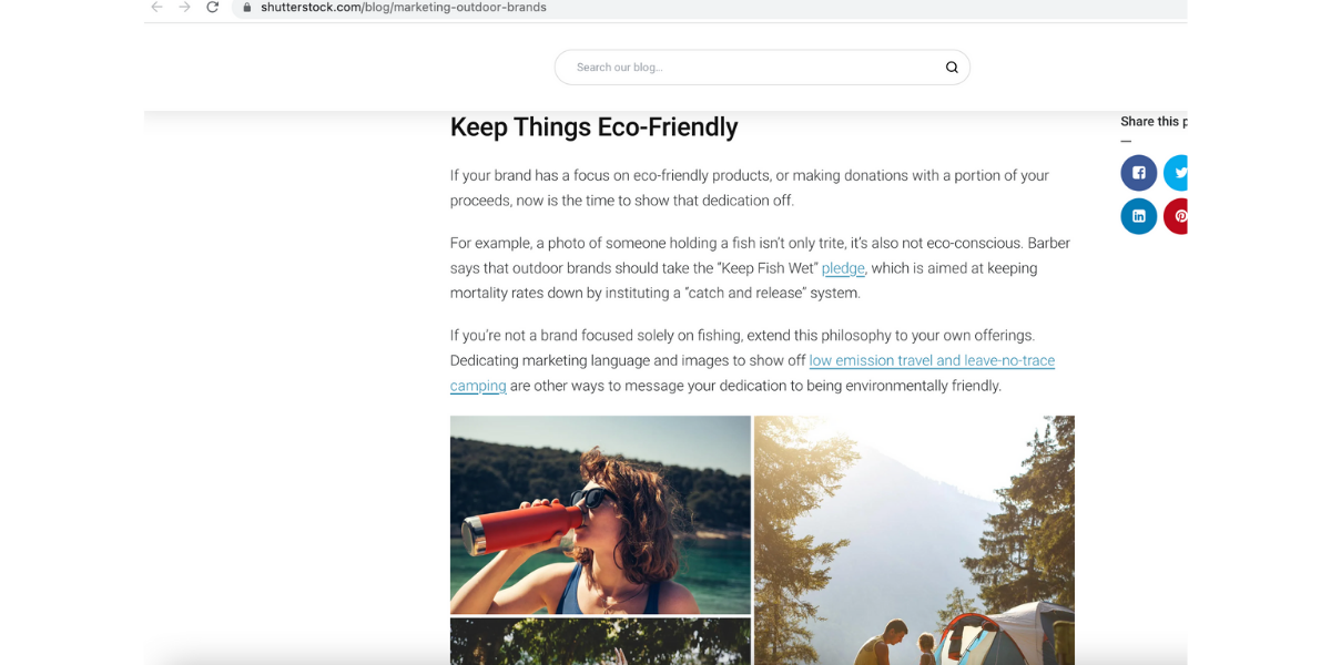 Stok fotoğraf, vektör, video, müzik sunabileceğiniz dünya çapındaki hizmet servisi Shutterstock da pek çok içeriği ile düşünce lideri kabul edilebilir. Özellikle Shutterstock Blog, genelden son derece spesifik konulara kadar pek içerik sunuyor. Bunların da pek çoğu veriye, araştırmalara, istatistiklere dayalı bir şekilde yazılıyor. Farklı yazarların içeriklerini görebileceğiniz Shutterstock Blog’da, yazarların kısa öz geçmişleri de sunuluyor. Örneğin, dış mekân markalarına yönelik şu içeriğe bakın: https://www.shutterstock.com/blog/marketing-outdoor-brands