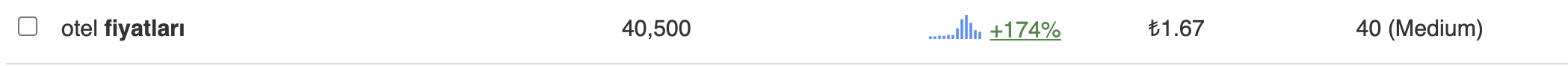Long tail keywords örnekleri vererek de tanımlarımızı pekiştirmekte yarar var. İlk örneğimiz “otel” anahtar kelimesi üzerinden olacak. Short tail keywords’lerin daha kısa olduğunu ve çok daha fazla aranma hacmine sahip olduğunu belirtmiştik. Long tail keywords’ler ise genellikle bunun tam tersi şekilde ilerliyor: