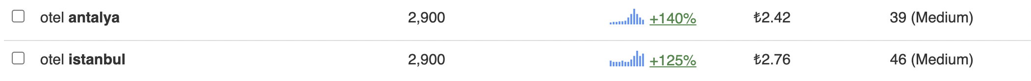 - Long tail keywords örnekleri: Otel İstanbul Avrupa, otel Anadolu Yakası, otel 5 yıldızlı İstanbul