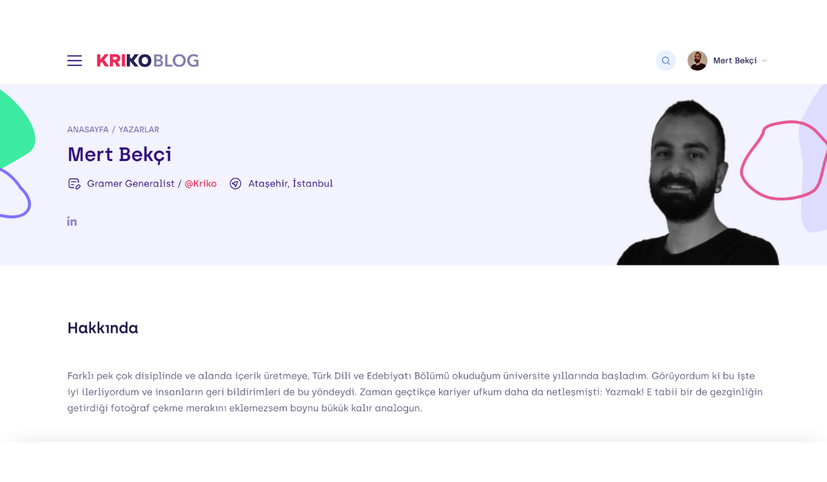 - Yazar biyografileri: Sitenizdeki her yazarın bir biyografi sayfası olsun. İçeriğin sahibinin imzası ve biyografisi de içeriklerin sonunda yer alsın. Görüldüğü üzere Kriko Blog’da hem bu içeriğin başında adımı görebilirsiniz hem de ayrı bir sayfada tatlı bir biyografimi.